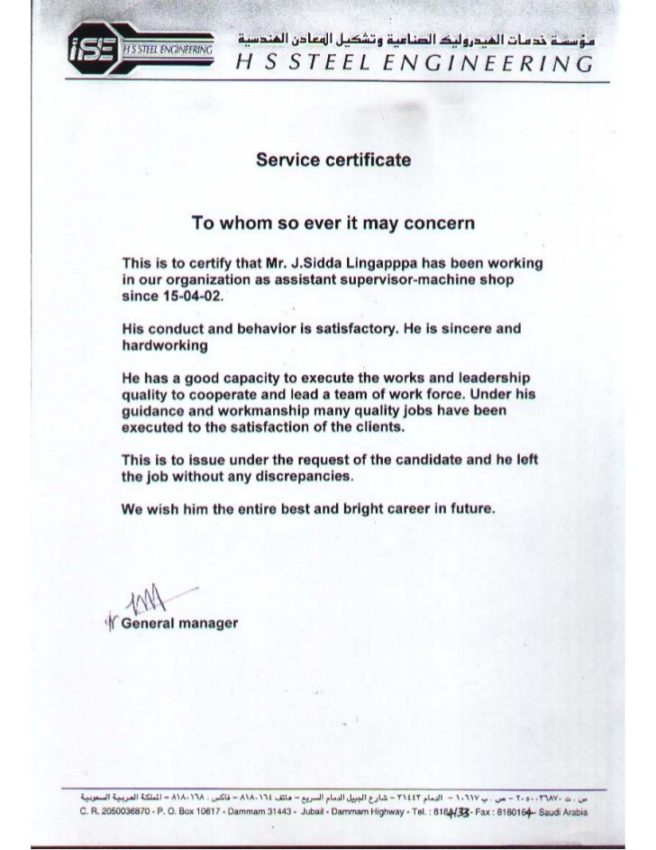 WORK EXPERIENCE CERTIFICATE FORMAT (1) IT SHOULD BE ON THE LETTER HEAD OF THE COMPANY/ORGANIZATION (2) Ref.No………………….. Any experience certificate not providing the details as required above (all the 12 points) ... Read Full Source